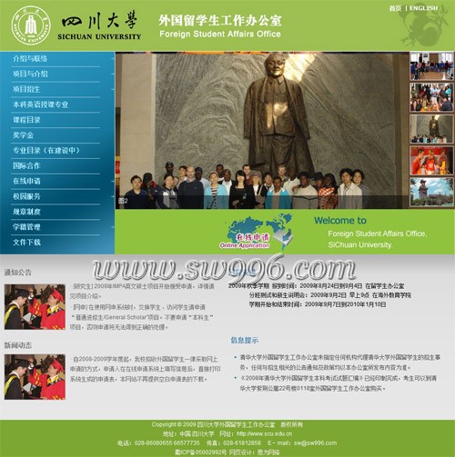 成都思為網(wǎng)絡(luò)公司網(wǎng)站建設(shè)案例 英文版首頁(yè) 中文版首頁(yè) 網(wǎng)址:http://www.sculx.cn 四川大學(xué)是由原四川大學(xué)、原成都科技大學(xué)、原華西醫(yī)科大學(xué)三所全國(guó)重點(diǎn)大學(xué)于1994年4月和2000年9月兩次“強(qiáng)強(qiáng)合并”組建而成的教育部直屬全國(guó)重點(diǎn)大學(xué),也是國(guó)家“211工程”和“985工程”重點(diǎn)建設(shè)的大學(xué)。原四川大學(xué)起始于1896年創(chuàng)辦的四川中西學(xué)堂;原成都科技大學(xué)由1954年全國(guó)院系調(diào)整時(shí)建立的成都工學(xué)院發(fā)展而來(lái);原華西醫(yī)科大學(xué)的前身是1910年美國(guó)、英國(guó)、加拿大的基督教會(huì)組織在成都創(chuàng)辦的華西協(xié)合大學(xué)。