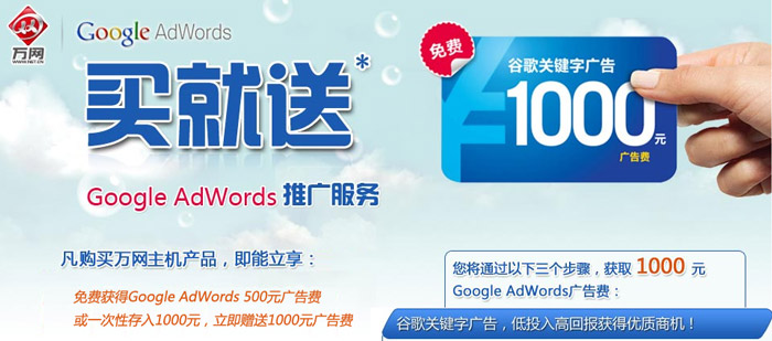 購萬網(wǎng)主機贈送google廣告費用--“Google AdWords買就送”活動參與指南,詳情點擊:http://m.gdslsr.cn/faq/zhuji/20110905122222.html